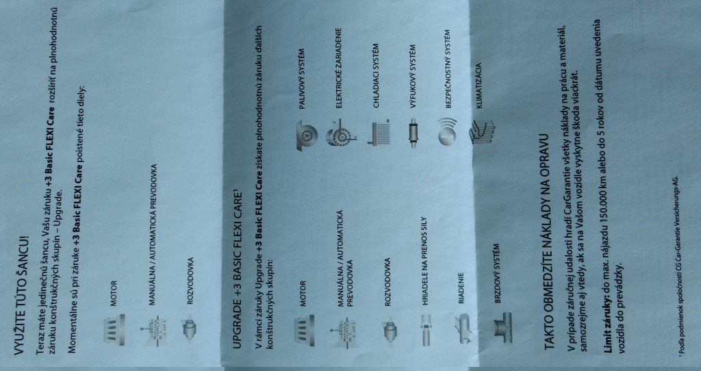 a po prečítaní tohto mi už ani predajca nevedel presne povedať, že akú záruku vlastne mám - tak som sa na upgrade záruky vykašľal, aj tak je tam spoluúčasť obmedzená podľa najazdených km a na prácu sa to nevzťahuje, resp. len čiastočne - je to tam ohraničené nejakou sumou.