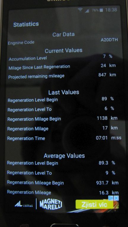 Dnes v ramci servisu kontrola DPF - vse v poradku, posledni regenerace probehla pred 815km.
