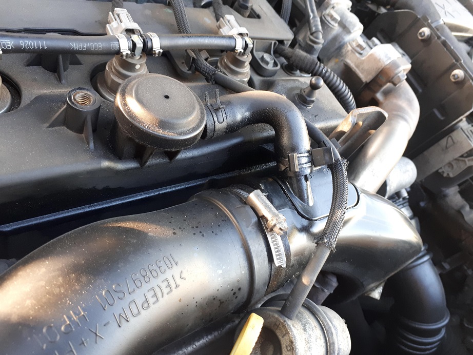 zober ruku a pohmataj rukou tu hadicu co mas na prvom obrazku pri baterke ta hadica hruba co ide do klapky od intercoolera, tam je taka gumka a sem tam zvykne prepustit olej, mne tamat prepusta... no kvapka olej ale minimalne mnozstvo tak to neriešim len viem ze sa to deje lebo na kryte motora vidim nakvapkane niekedy