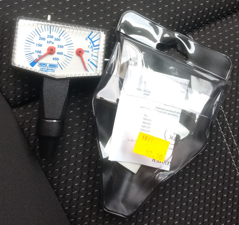 Mám taký istý už od roku 1986 a doteraz funguje bez problémov a tiež ukazuje o cca 0,2 atm. alias baru (jeden dielik) menej ako tlakomer (údajne 2x ročne ciachovaný) v pneuservise - kontrolujem to každým rokom pri vyvážovaní pneumatík.