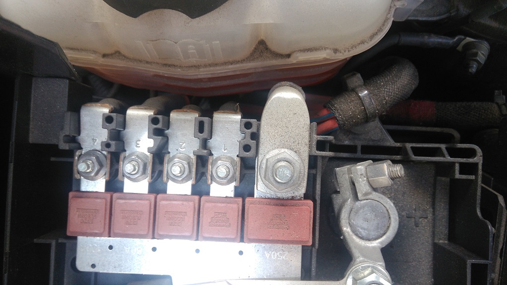 EDIT: takže sľúbená odpoveď - ta nezapojená svorka č.4 (a k nej pravdepodobne ten nezapojený kábel) je cez 100A poistku napájanie zadného poistkového bloku v batožinovom priestore.