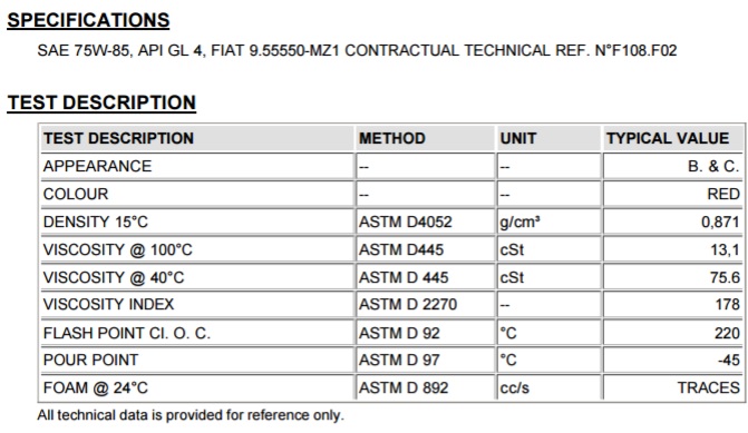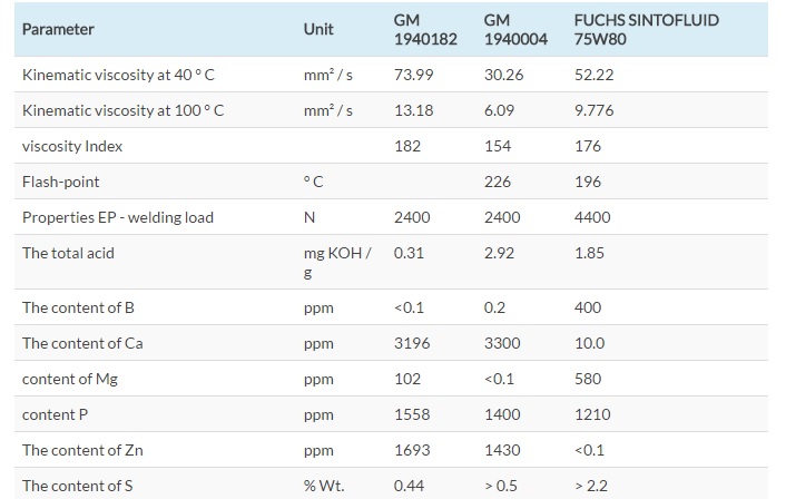 Porovnanie olejov - zaujimave je, ze ten stary GM olej cervenej farby 1940182 do 2012 (GL4) ma takmer rovnake vlastnosti ako Tutela Transmission Matryx