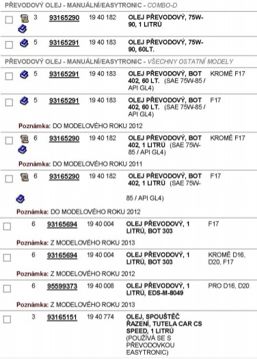 Mam tu vypis zo systemu GM, pre automat dokonca zachovavaju nazov Tutela, takze je predpoklad, ze aj manual bude Tutela. (Dalej je tam este Total Elf, ale to je pre motory a prevodovky Renault v dodavkach)