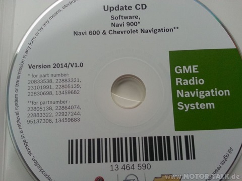 Update radio software with software CD, Version 2014/V2.0 (GM10.8V208), (PN13490275/CN1779534), available via EPC.